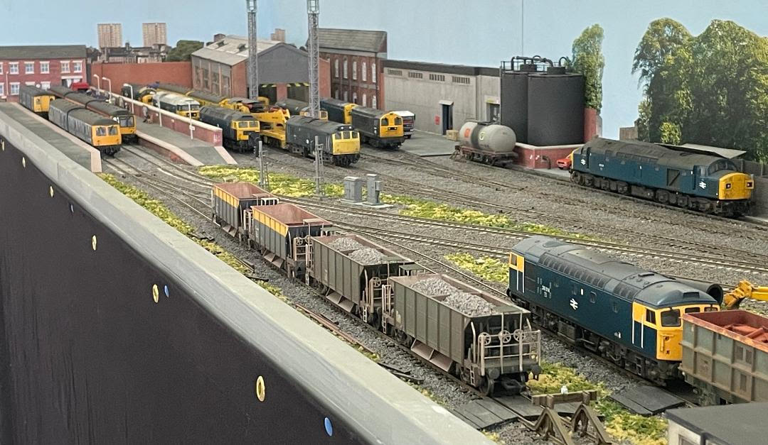 There is a small off-scene fiddle yard behind the gantry crane. All locomotives and Multiple Units are equipped with DCC and sound and are carefully weathered to replicate the look of the real thing. The layout is available for exhibition at shows. |