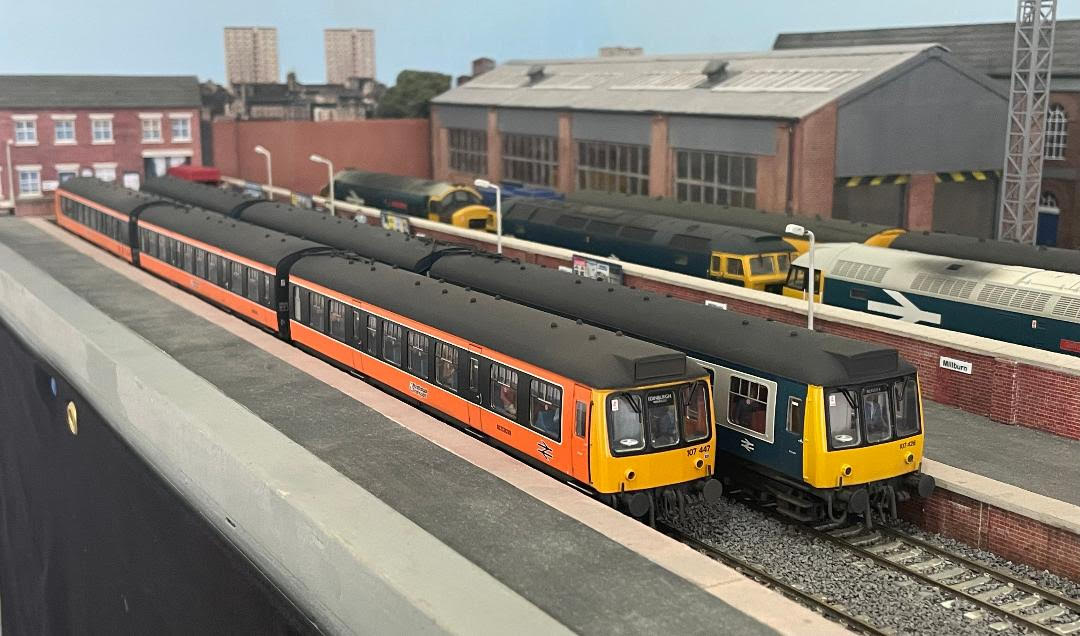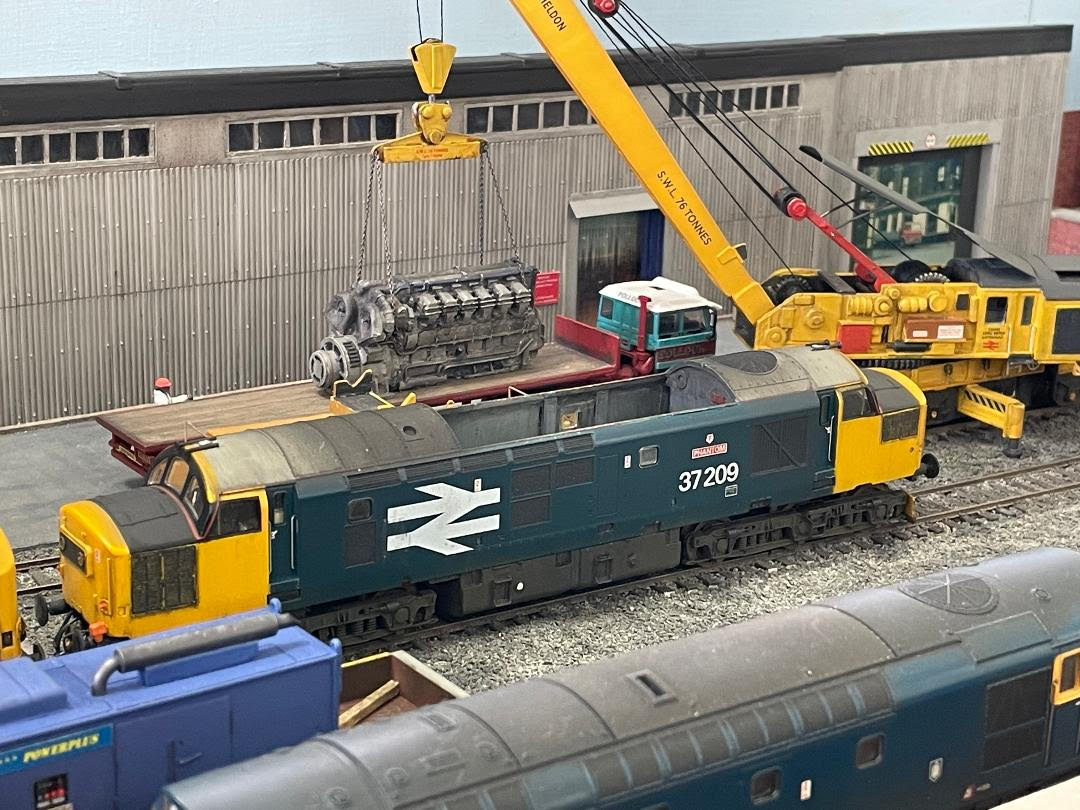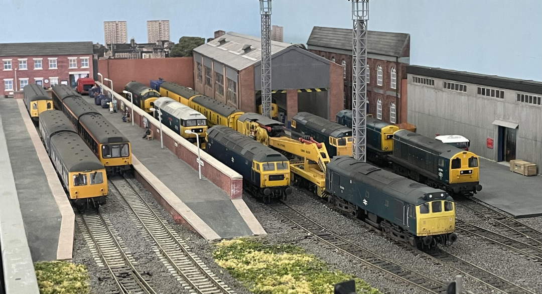 MillburnThis is an "OO" British-outline layout recently made by John representing the terminus of a small branch line served by Diesel Multiple Units (DMUs) "somewhere in Scotland". Alongside the terminus is a Motive Power Depot (MPD) that services various diesel locomotives including Classes 20, 33, 37, 40 and 47 and also hosts 75 ton heavy mobile and gantry cranes.
